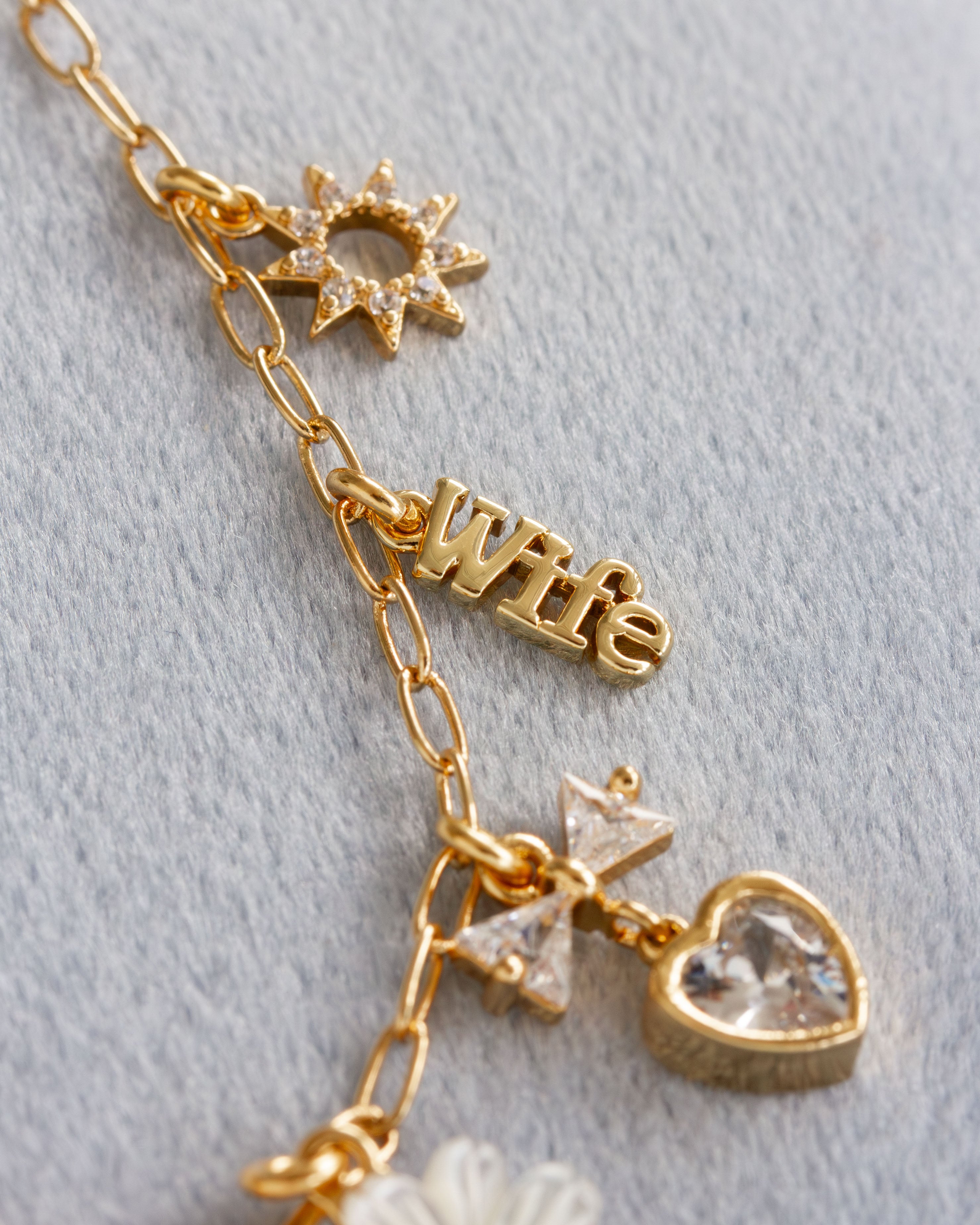 Set on our best-selling paperclip-style chain, it strikes a fun balance between the chain’s sleek minimalism and the playful, maximalist vibe of the charms. Wear it now with your favorite outfit and keep it close throughout your bridal journey—it’s a keepsake you’ll treasure long after the last dance.