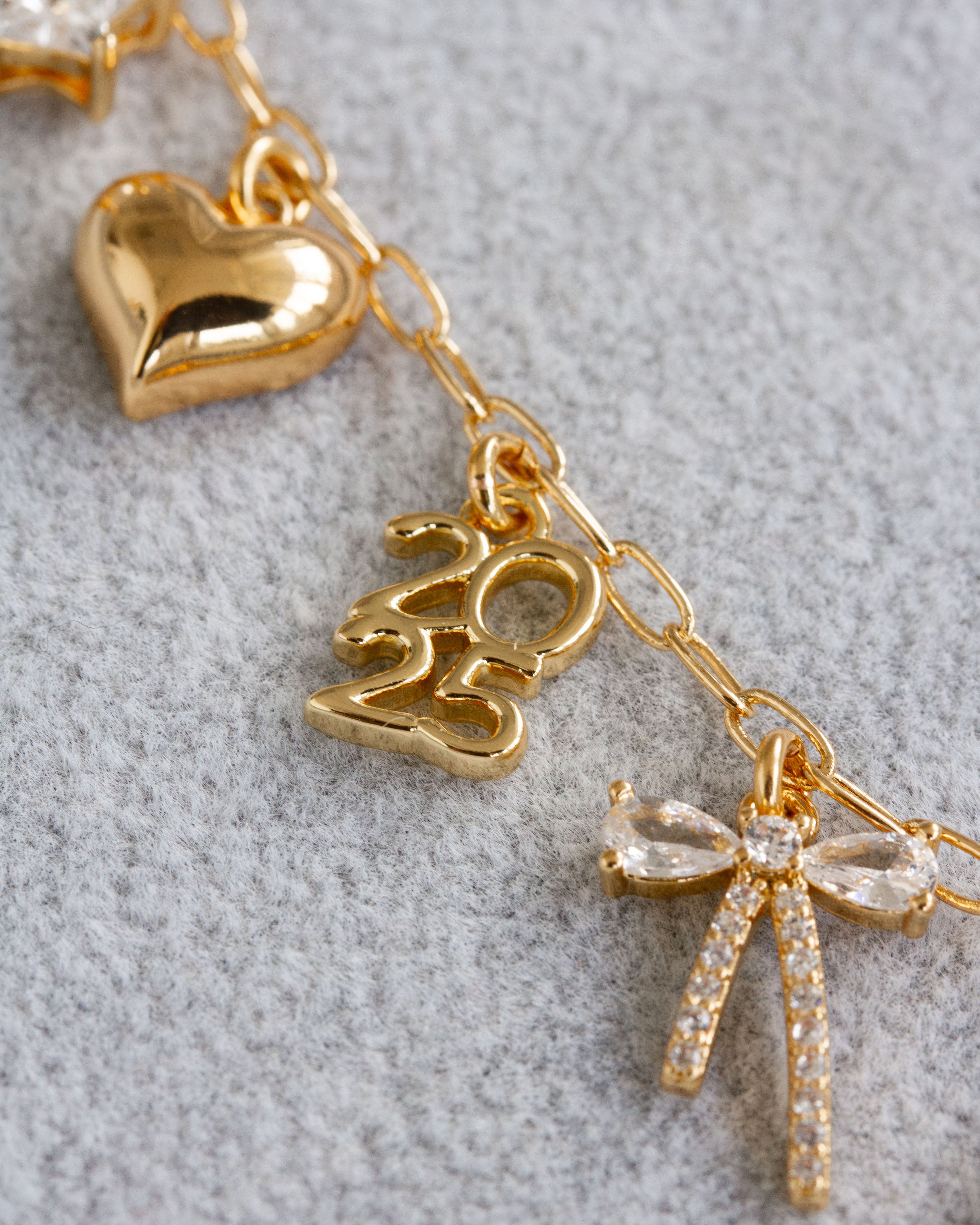 Each charm holds significance—the heart for love, mother of pearl for prosperity and good fortune, and of course, the bow charm, symbolizing the joyful act of “tying the knot.”