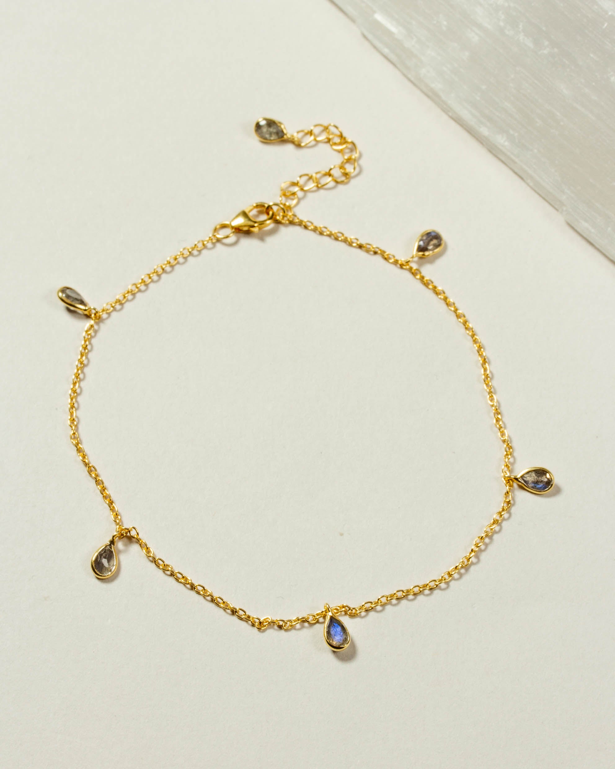 Set on a delicate gold-plated sterling silver chain, this dainty anklet embodies quiet sophistication with a touch of the mystical. Labradorite is known as the stone of transformation and protection, reminding its wearer to trust the journey and embrace the unexpected.