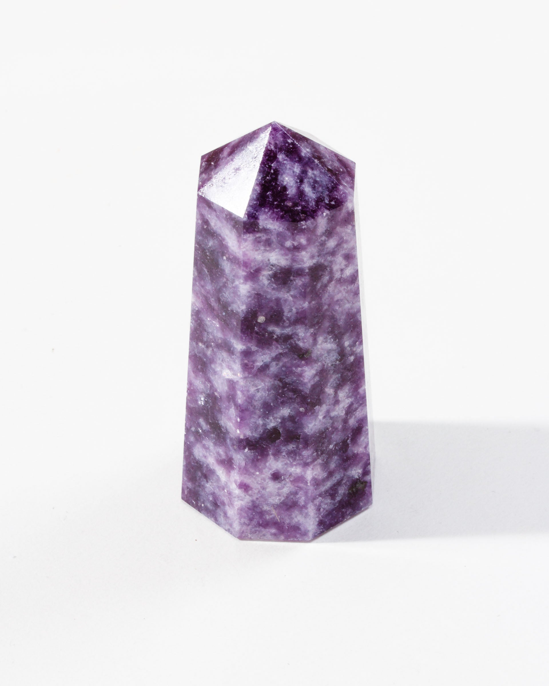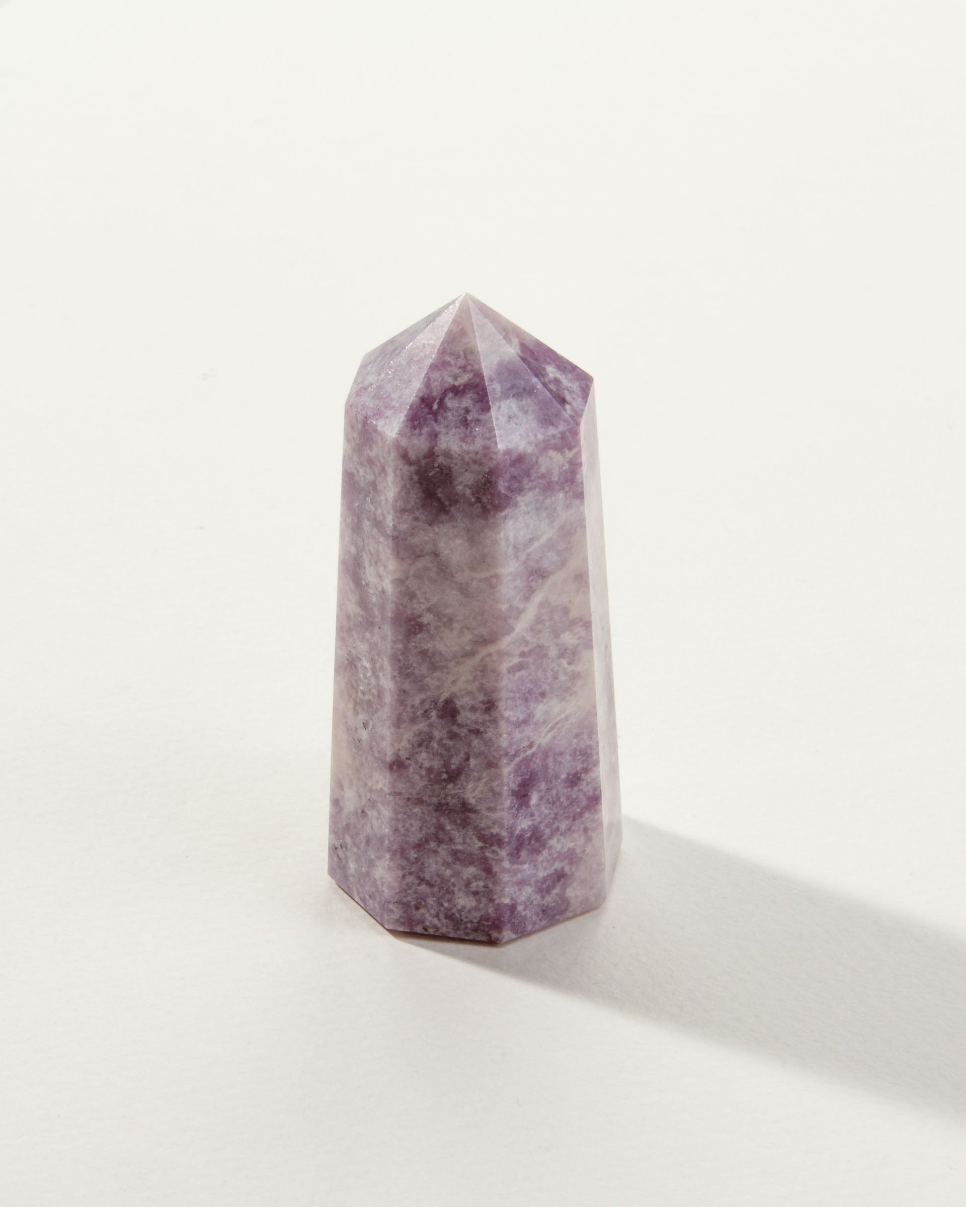 Known as the stone of serenity, lepidolite is believed to ease stress, calm the mind, and support emotional balance. Carved into a faceted tower shape, it’s just the thing for directing peaceful energy wherever you need it most—your desk, nightstand, or sacred space.