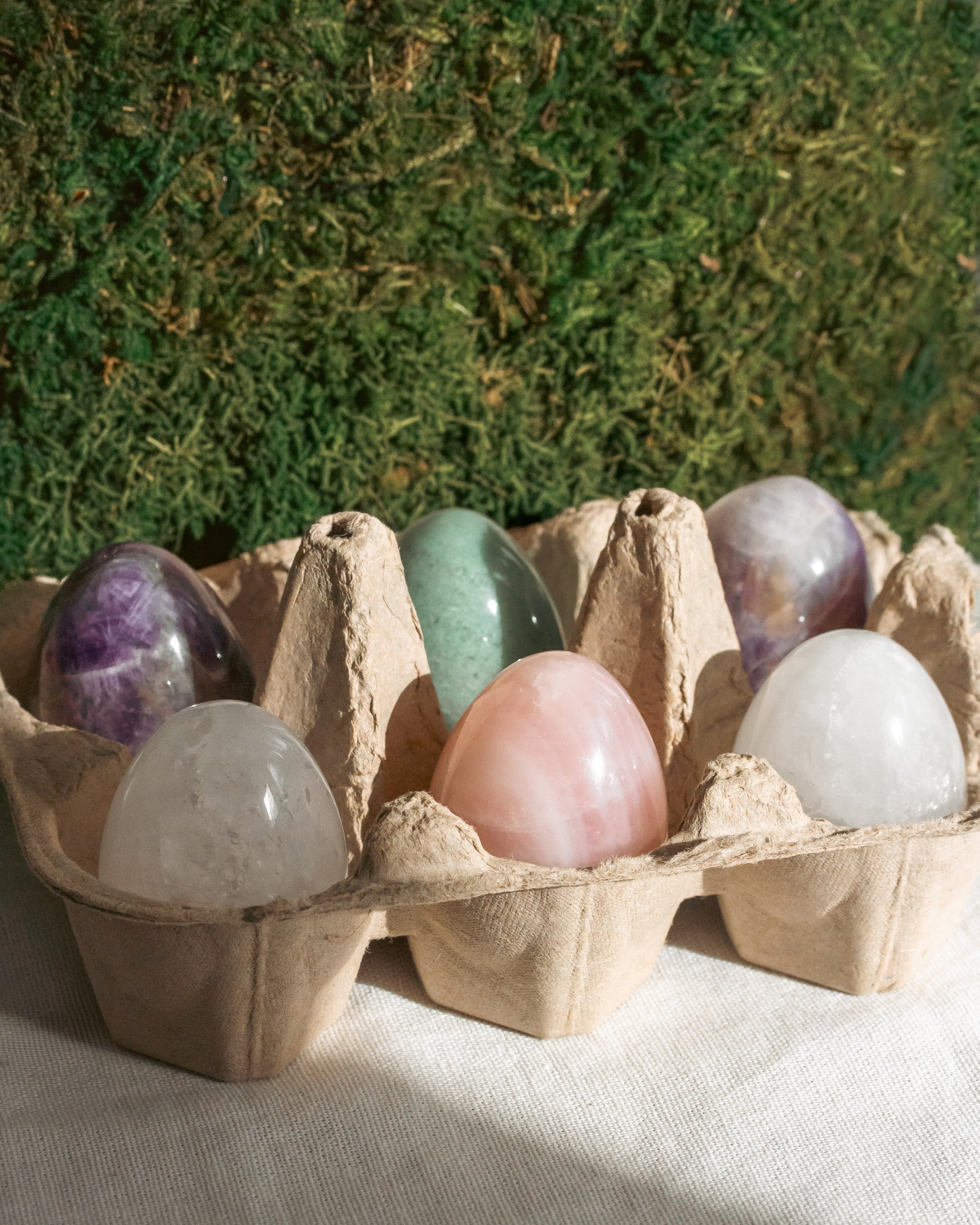 No carton required. These carved gemstone eggs are a lighthearted nod to nature’s perfect shape — smooth, balanced, and quietly grounding in the palm of your hand. Each stone carries its own color, pattern, and personality, making every piece feel like a treasure discovered rather than manufactured.