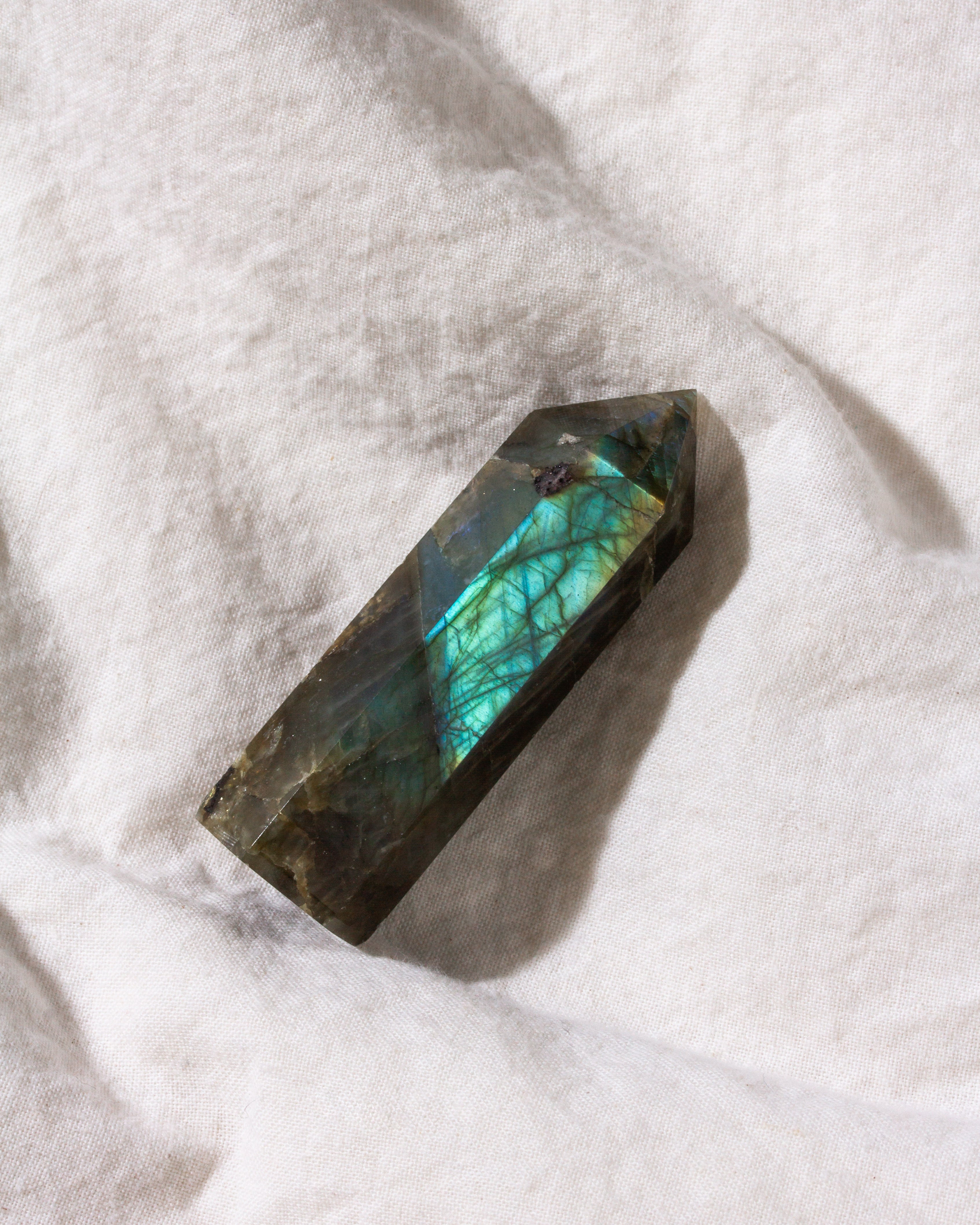 The Labradorite Pillar Mini Tower is a small but striking piece, chosen for its natural depth and signature flashes of blue and green. Polished into a clean, pillar-shaped form, this mini tower highlights labradorite’s luminous surface while maintaining a refined, architectural feel.