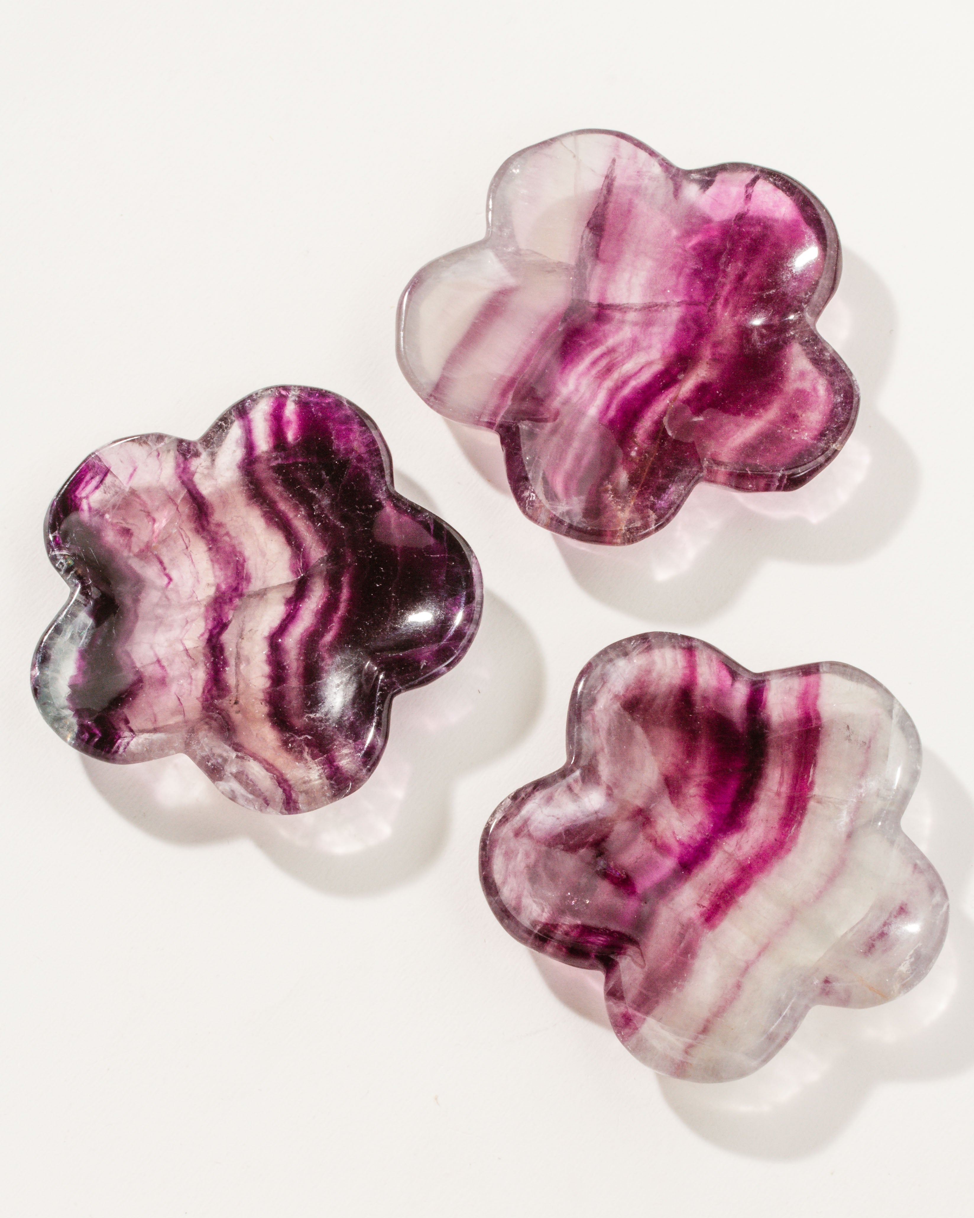 Add a dash of sweetness to your space with this daisy-inspired jewelry dish. Made with genuine fluorite, each one has a unique color pattern that lends a fun, artistic touch. Fluorite is believed to have various healing properties, including enhancing mental clarity, focus, and decision-making.