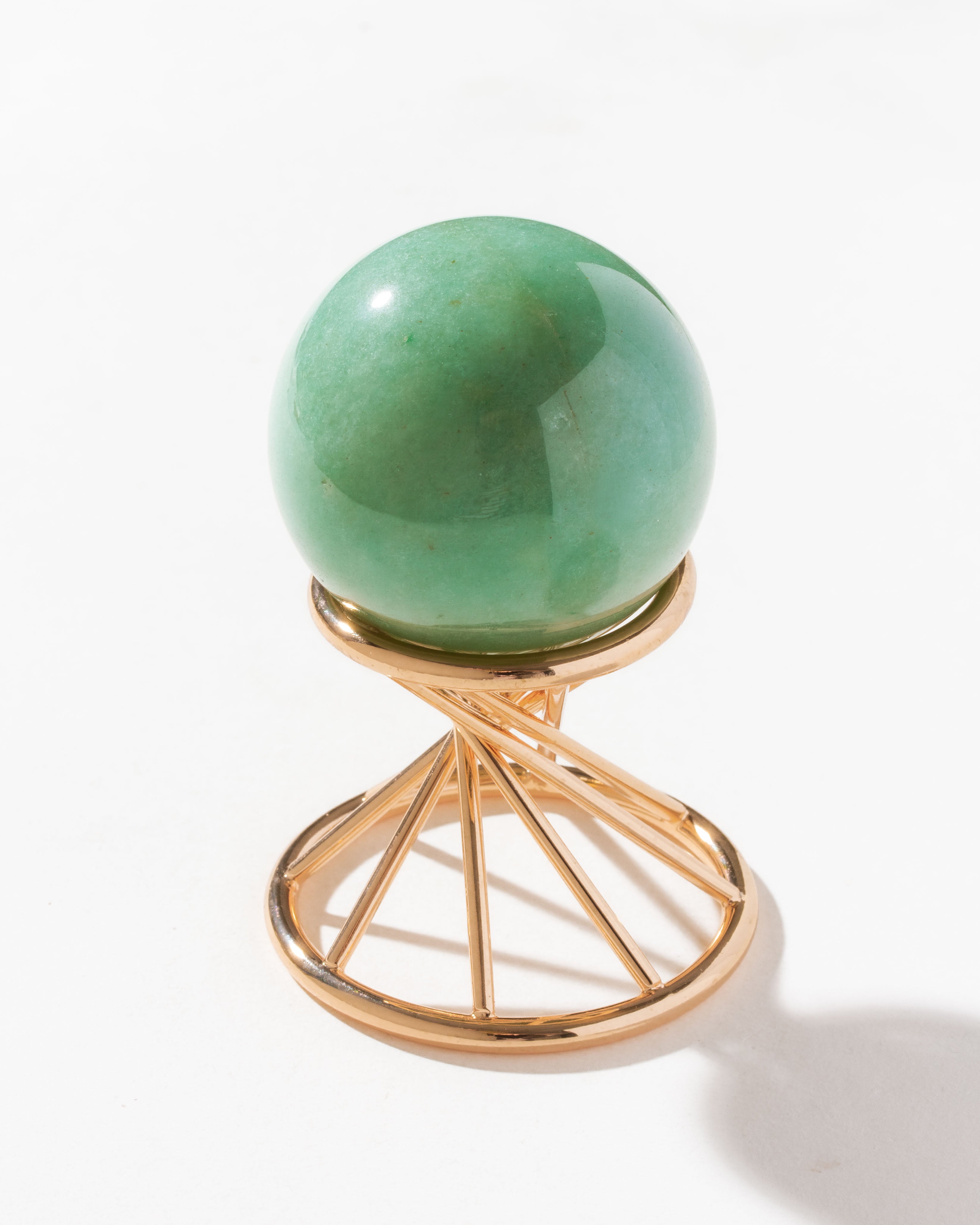 This spherical green aventurine stone adds a touch of natural beauty to your space. Known as the "Stone of Opportunity," Green Aventurine is often associated with luck and optimism.