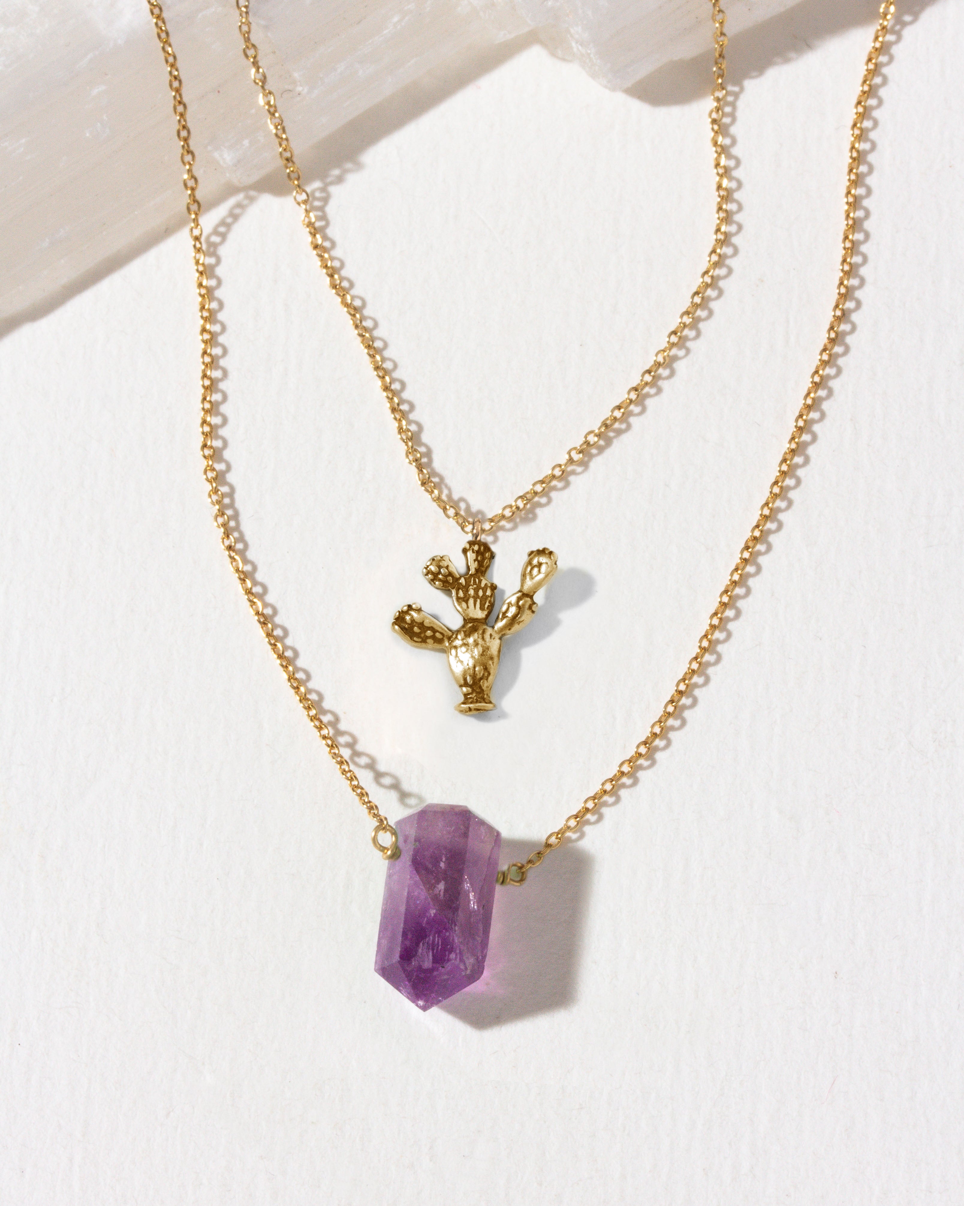 Just as the cactus thrives under the toughest conditions, amethyst is known as a stone of clarity and calm—together, they symbolize strength, balance, and inner peace.