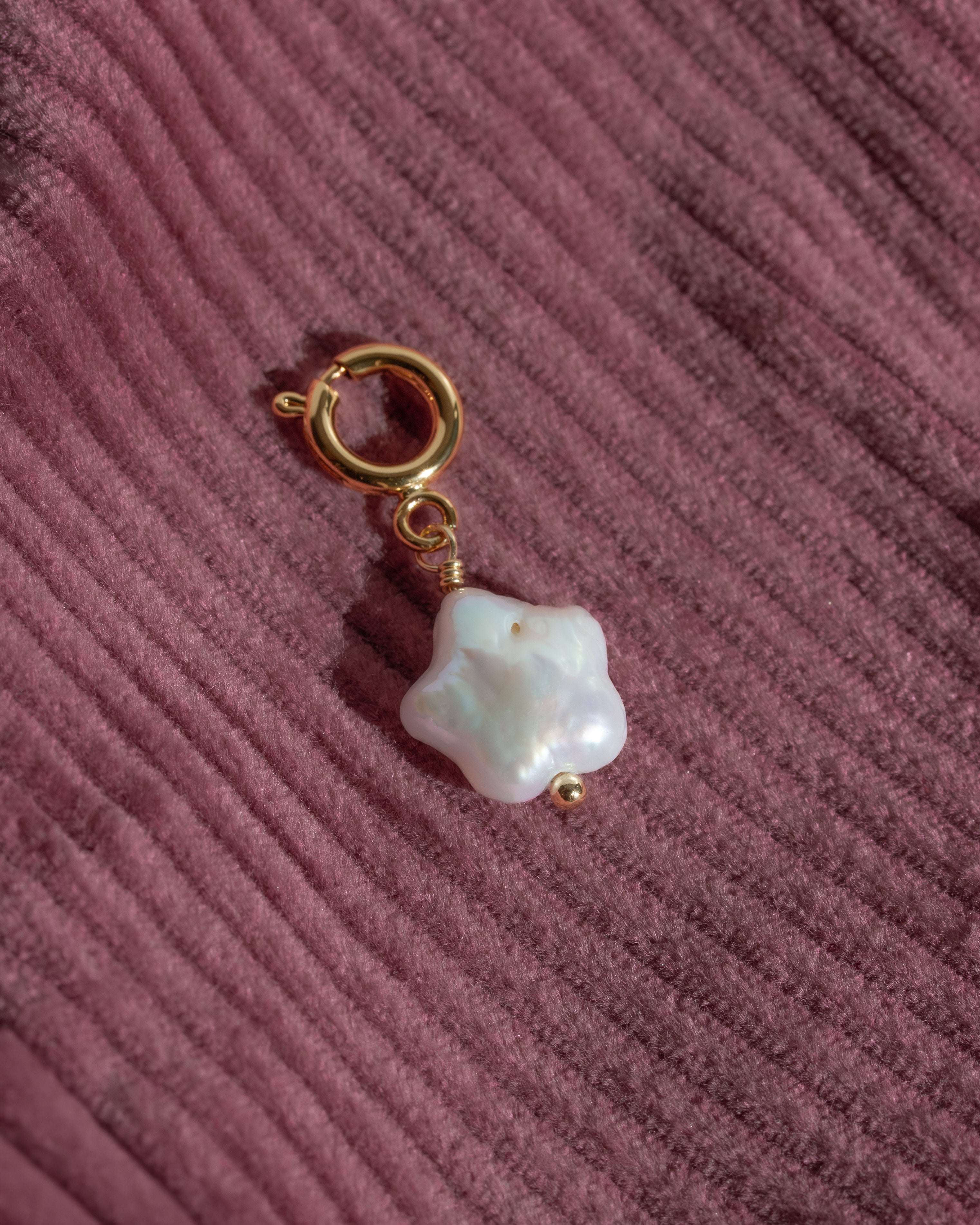 The Sea Star Pearl Charm is a gentle homage to the ocean—where it was formed, shaped, and polished by nature itself. Crafted from a freeform, puffy cultured freshwater pearl, each charm takes on a softly rounded star silhouette with no sharp edges, giving it an irresistibly organic feel. No two are ever alike, making every Sea Star uniquely special.