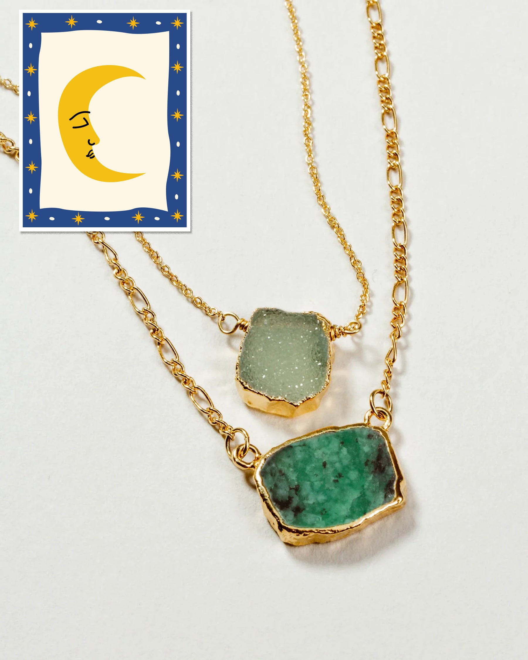 Transport yourself to a faraway land! Featuring the fresh and vibrant hues of the ever popular emerald gemstone, each layer of this necklace serves up its own unique details. It’s perfectly layer able, effortlessly chic and ensures easy pairing with both bold and muted looks. Live life freely while embracing your most authentic bohemian style in a classic look.