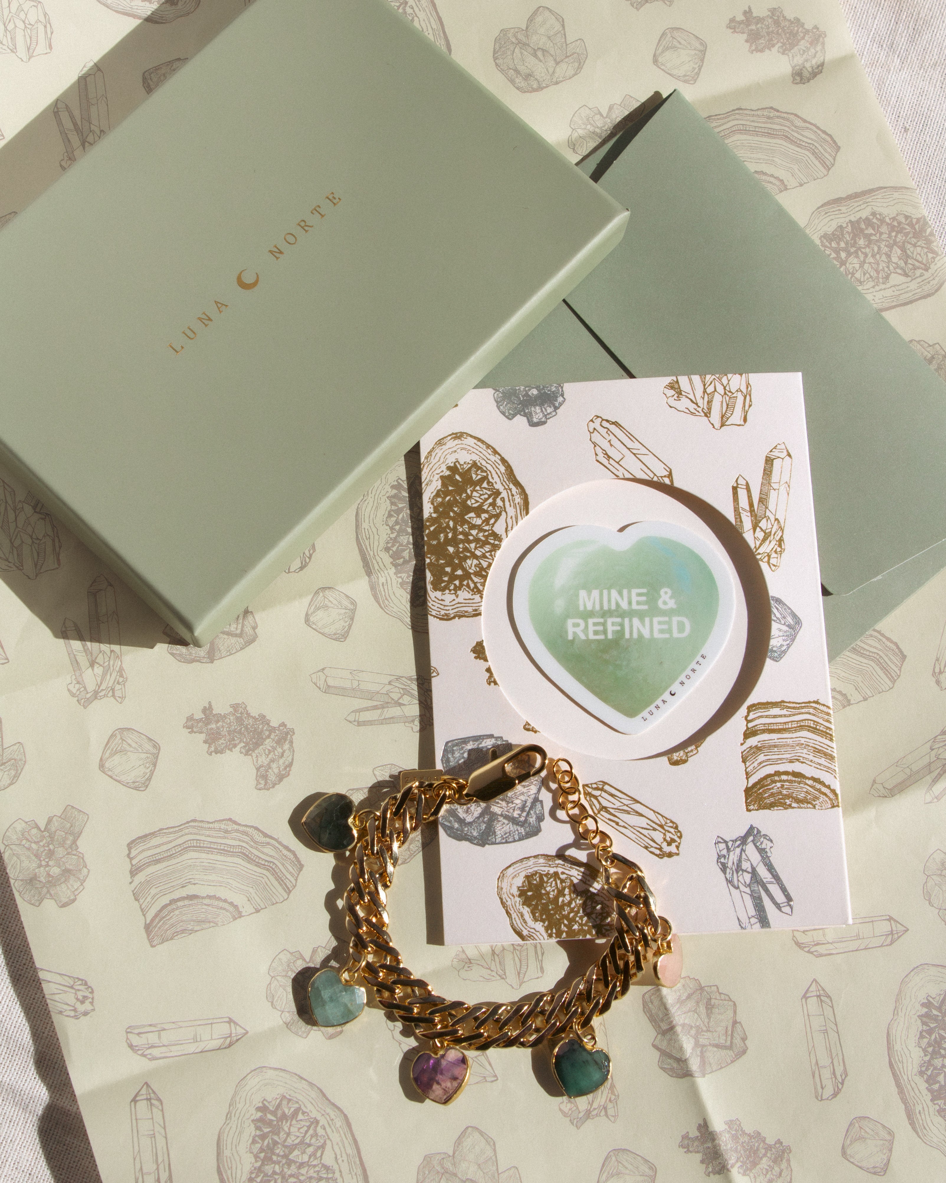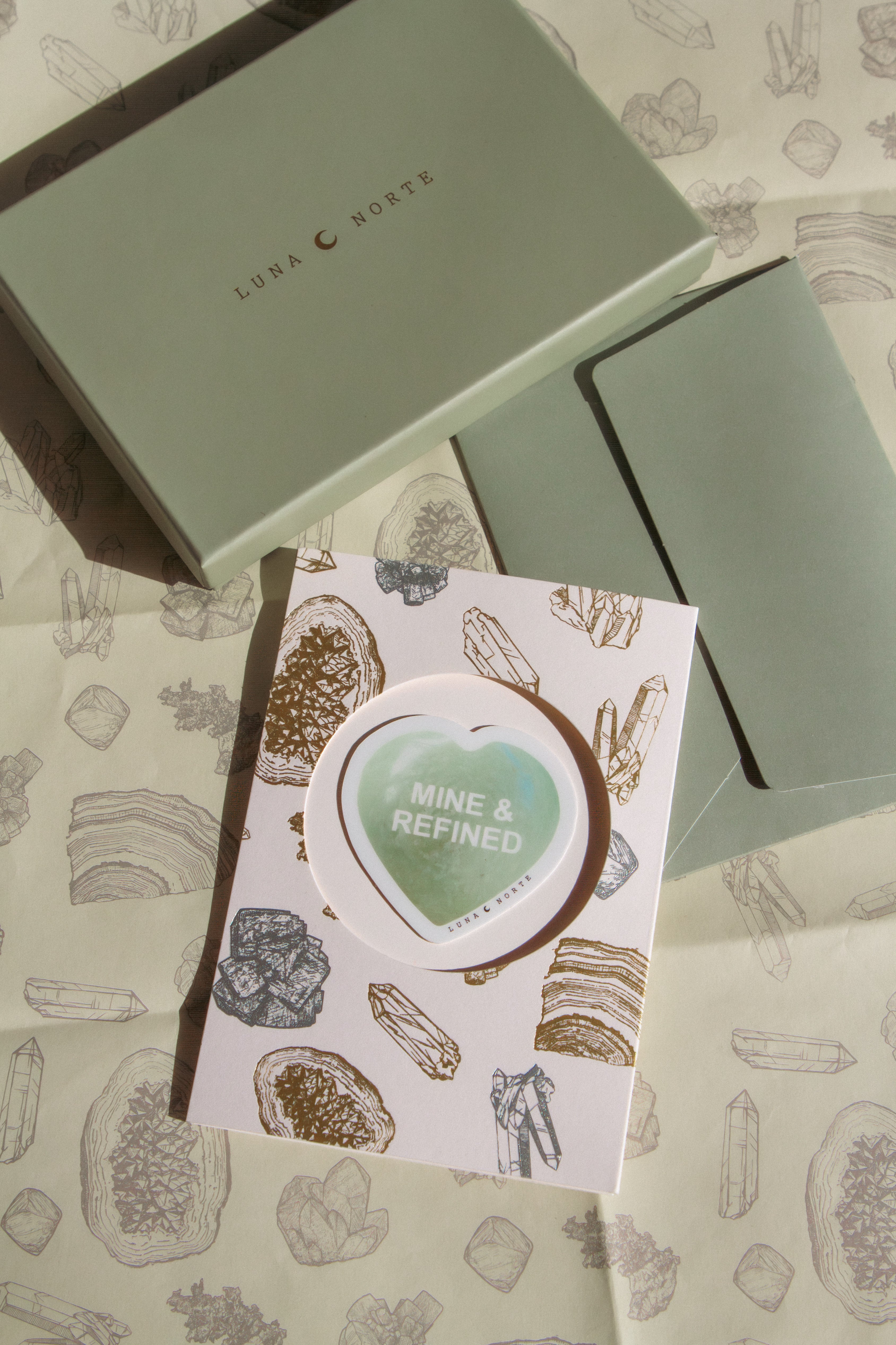 We know gift wrapping can get pricey when purchased piece by piece, so we brought everything together—beautifully coordinated and thoughtfully designed—to complement the jewelry or crystal you’ve chosen. The sage-toned box adds an extra touch of elegance and can even hold our envelope-style packaging if needed.