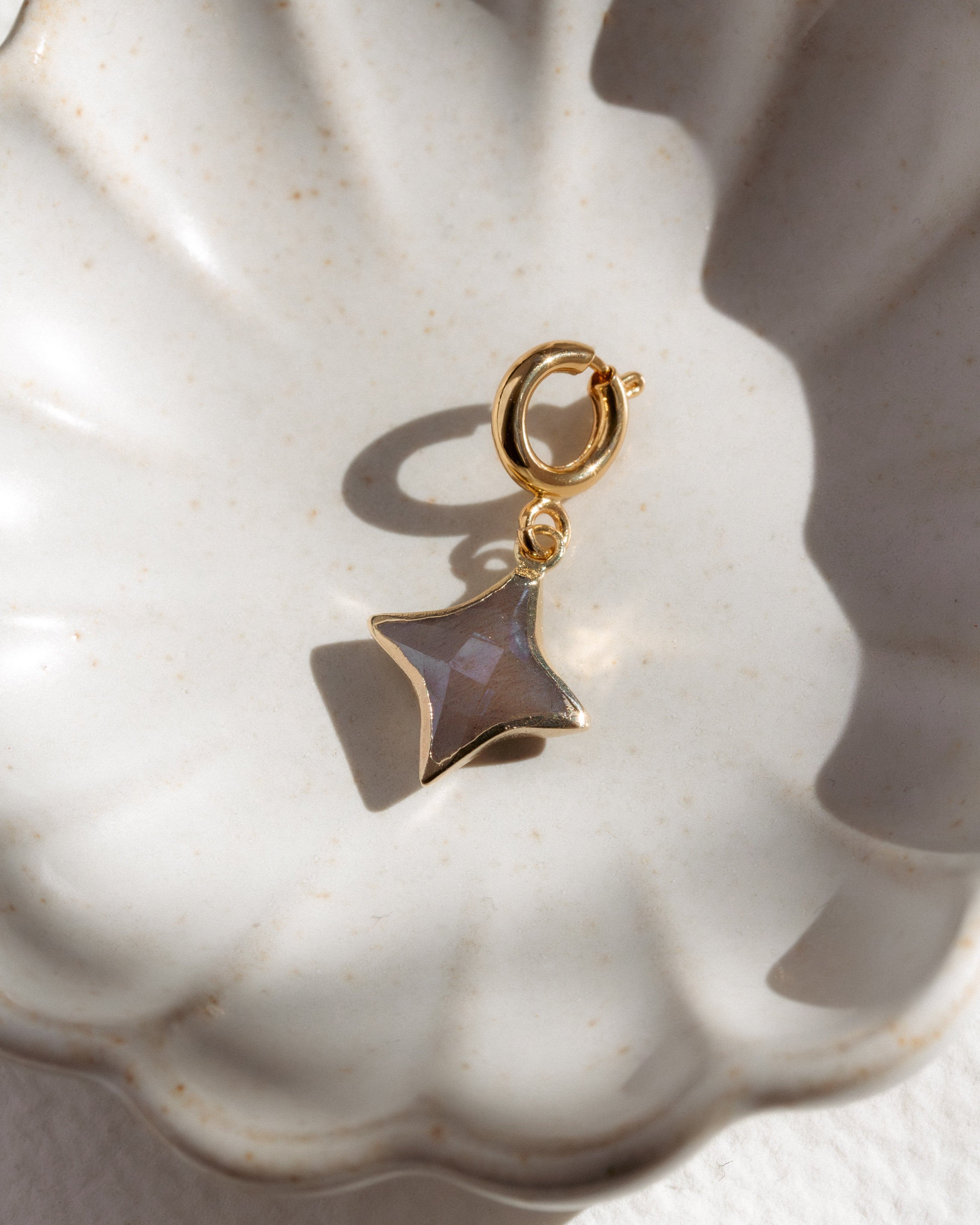 Coffee Moonstone is believed to symbolize intuition, emotional balance, and inner guidance—echoing the steady presence of Polaris in the night sky. It’s a charm that feels grounding and illuminating at once, perfect for those who love understated sparkle and natural beauty.