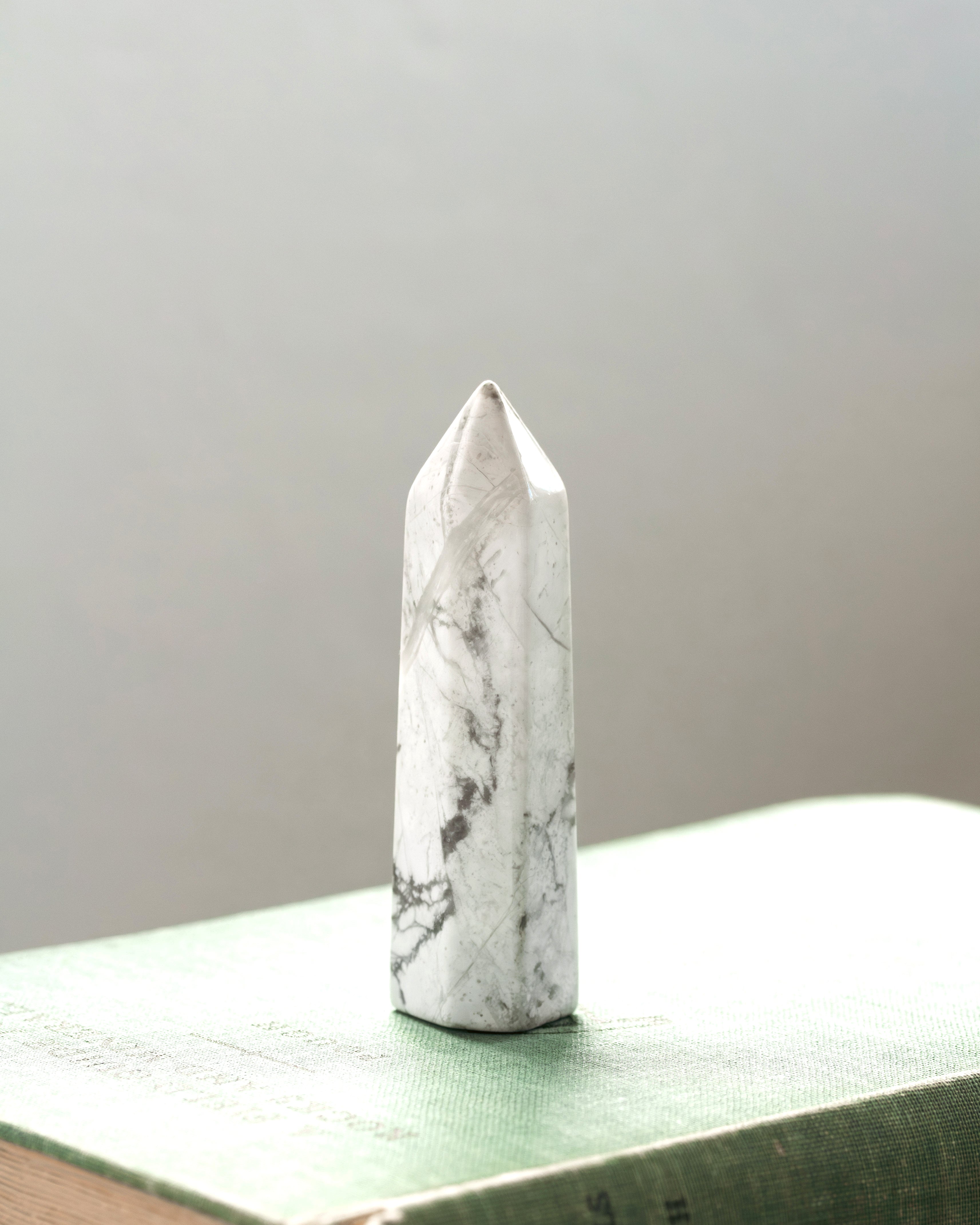 A gentle reminder to slow down, this white howlite tower features soft marbling and a smooth, polished finish. Known for its calming presence, it brings a sense of ease and quiet to any space—perfect for desks, nightstands, or as a gift that brings a moment of calm.