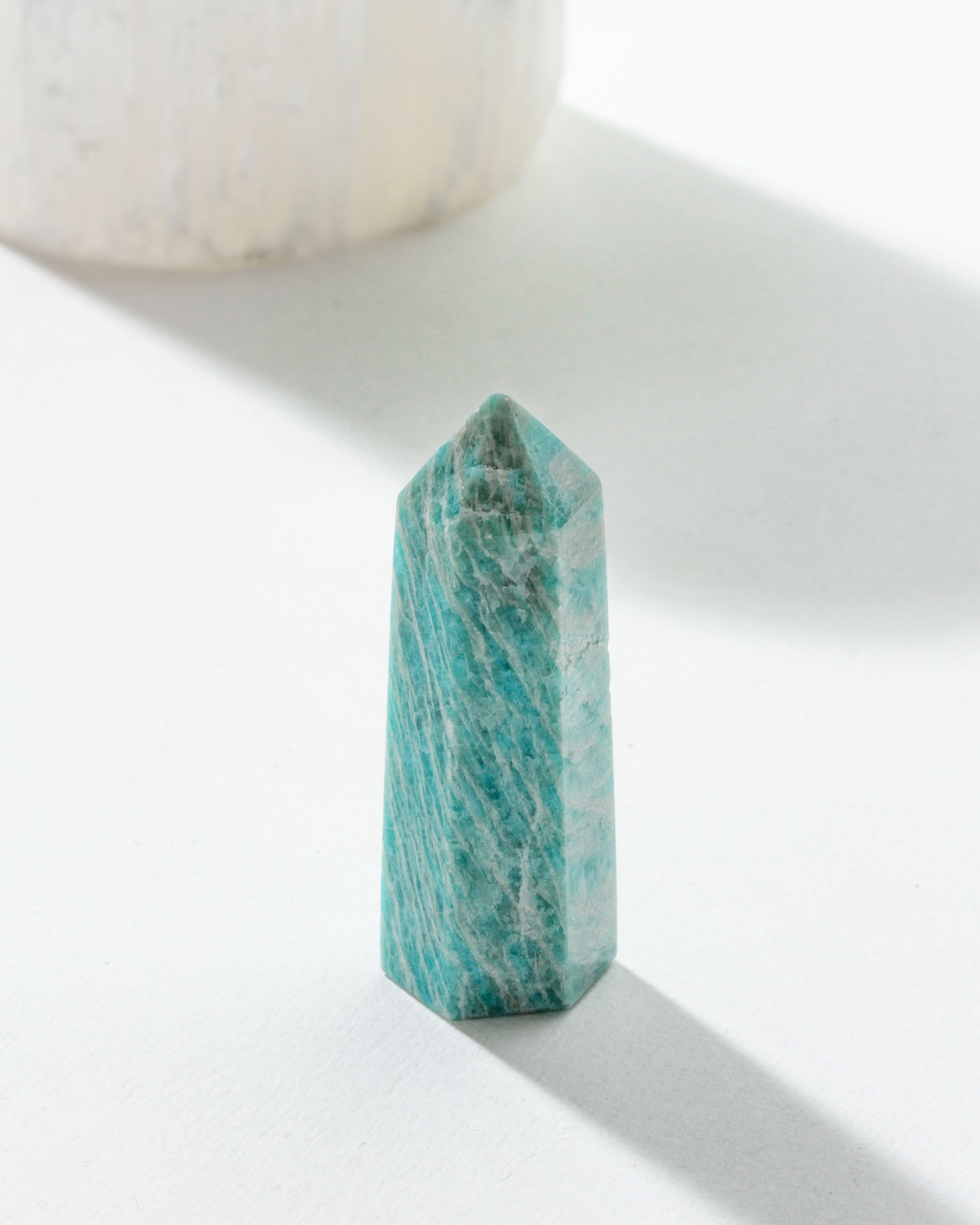The striped pattern of this Amazonite tower adds a unique visual interest, showcasing the stone’s natural beauty and enhancing its energy flow. The tower shape amplifies the crystal’s properties, directing its calming and balancing vibrations throughout your space. This crystal tower can be placed on your desk, nightstand, or any area where you seek tranquility and clarity.