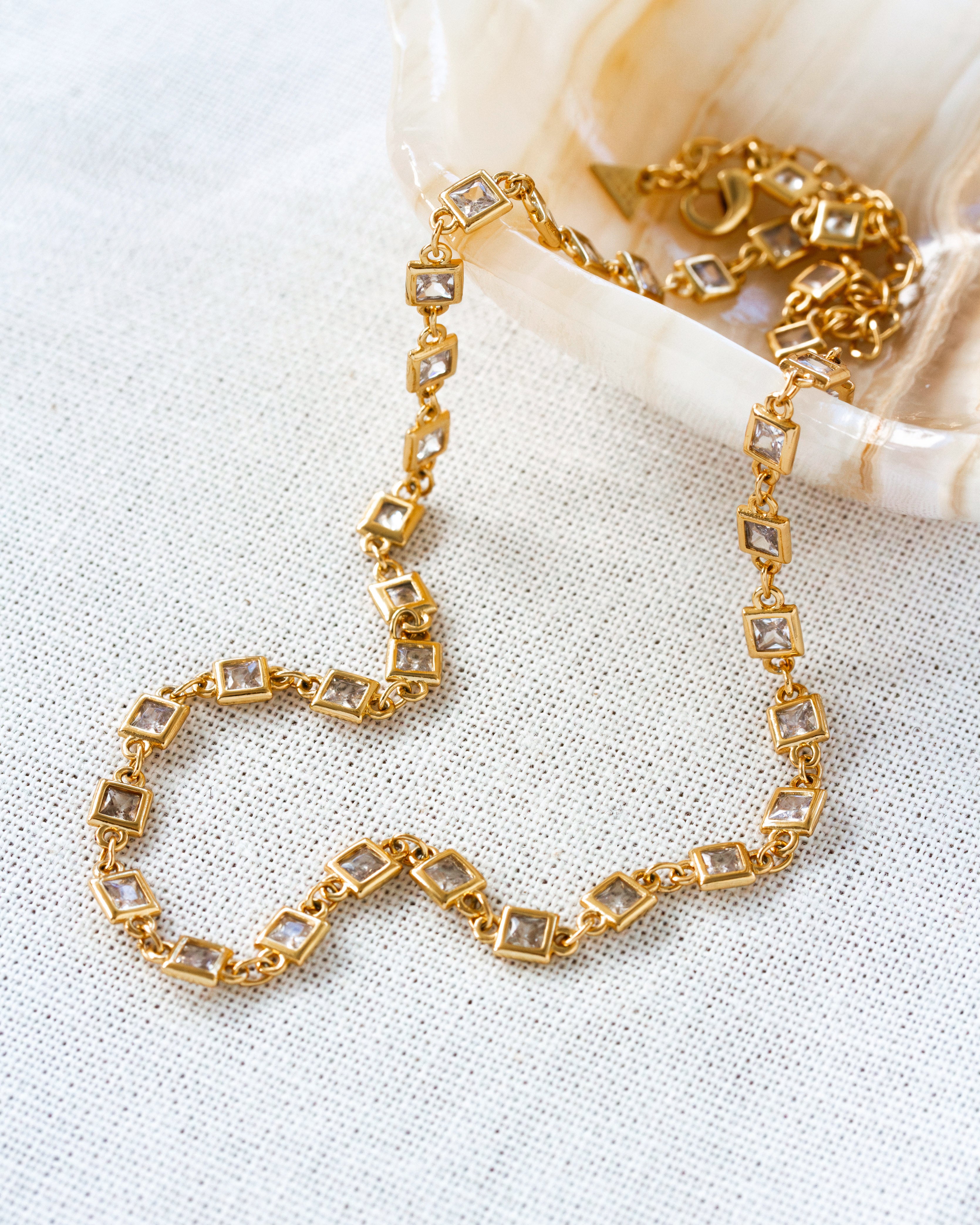 Grid Spectrum CZ Collar Chain Layering Necklace