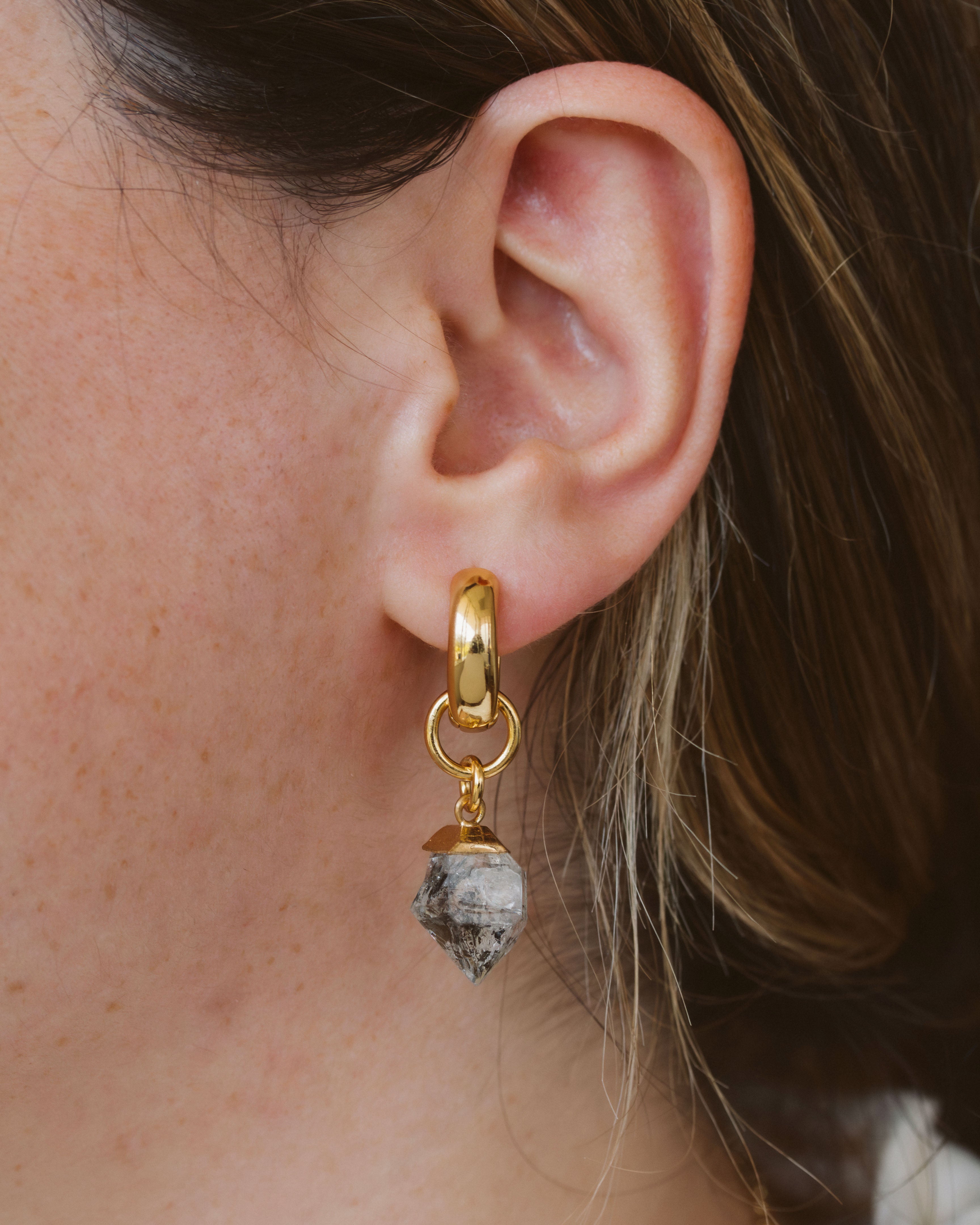 Designed to slide effortlessly onto our signature Huggie Hoop or Elevated Huggie Hoops, these charms open up a world of styling possibilities. Whether you’re aiming for a subtle, understated accent or a bold, layered statement, Rock Haven charms let your mood and individuality shine through.
