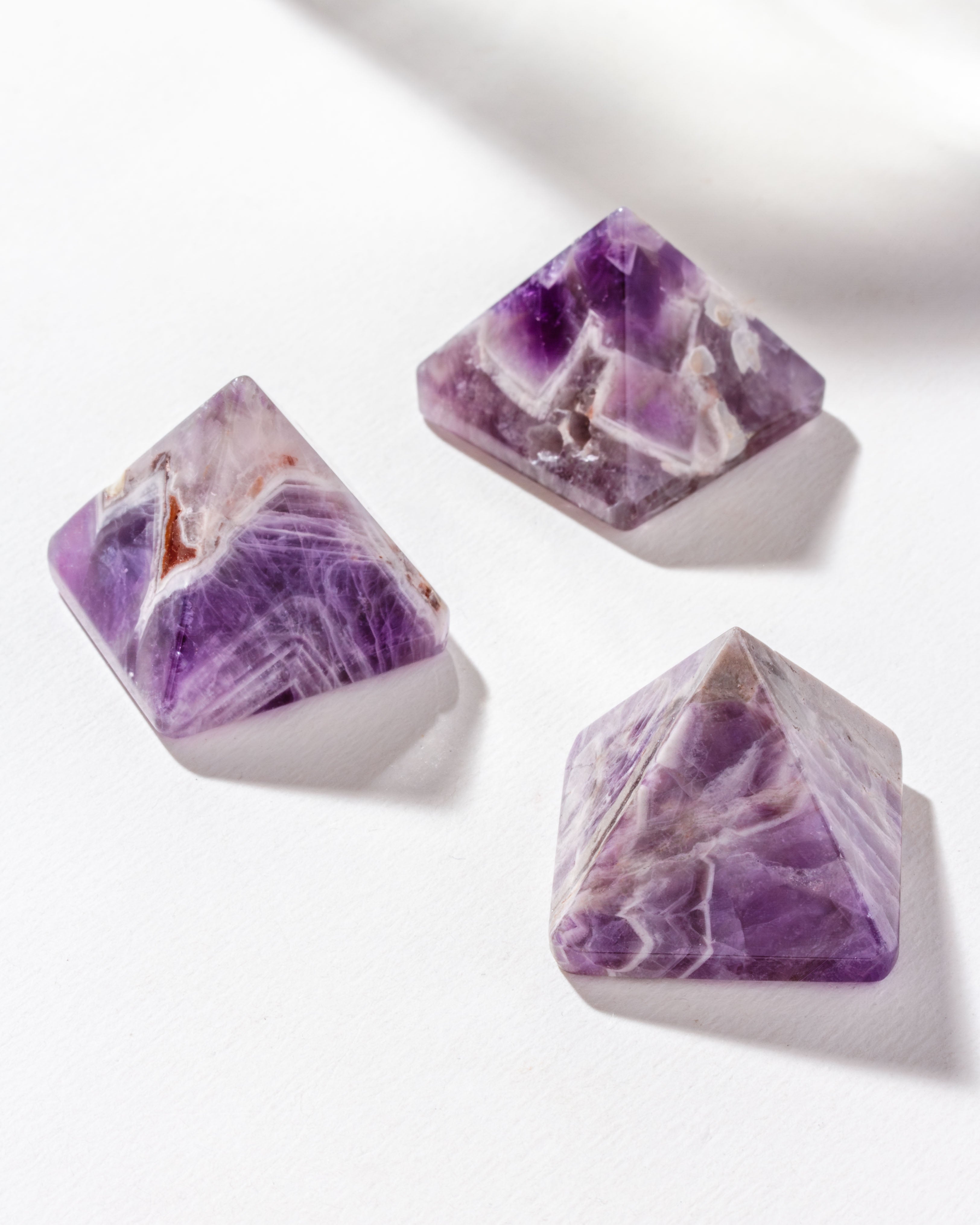 Amethyst is often associated with clarity, inner peace, and protection. It’s a go-to stone for when you’re needing to unwind, refocus, or create a more serene environment. Whether you keep it close during meditation or simply admire its natural beauty, this little pyramid brings both good vibes and feel good energy.